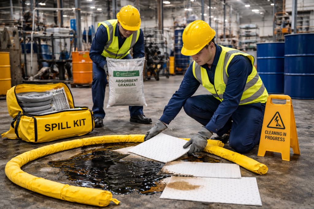 Soluciones profesionales para la absorción de aceites, químicos y líquidos industriales en entornos de trabajo exigentes